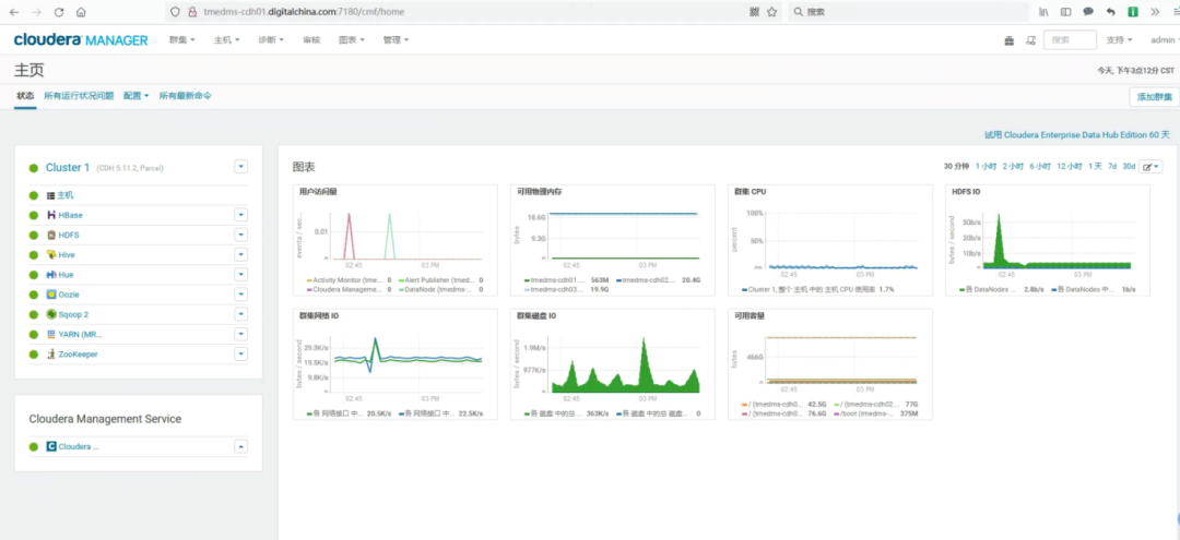 使用CM(Cloudera Manager),我们可将集群自动化安装、中心化管理、集群监控、报警处理等功能融为一体。集群的安装可以从几天的时间缩短为几个小时,运维人员也会从数十人降低到几个人,这更适合我们的工作所需,将繁重的运维管理工作剥离出来,将工作重心集中的业务开发中。
