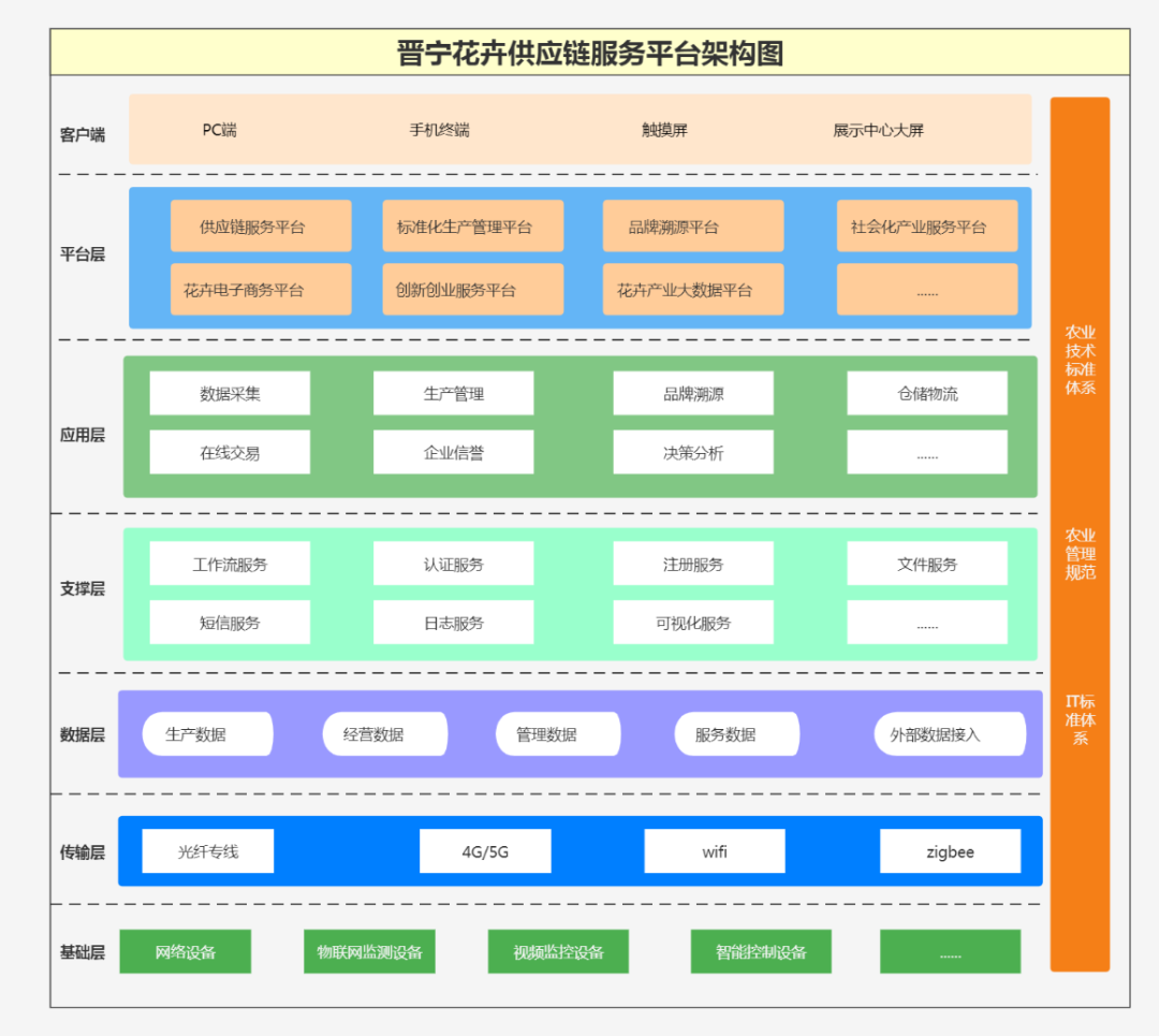 晋宁区作为云南省也是全国第一鲜切花种植大县,以新品种、新技术、新模式、新机制展示和产业化示范为重点,构建晋宁区花卉产业数字农业管理和应用体系,推进农业精准化、智能化、高效化、绿色化、生态化的生产,通过信息化手段,对接农户和现代农业技术,提高鲜花种植的科技水平。提升政府对产业的管理及决策能力,打造具有全国影响力的花卉产业中心。神州信息作为科技支撑方,围绕晋宁区“一县一业”的重点工作任务—花卉产业供应链服务平台开展项目建设运营,构建了一个集花卉生产、加工、物流、交易、服务等一体化的供应链服务平台,通过对产业链资源的整合及一体化管理,让种子种苗企业、种植户、供应链公司等产业链相关企业线上实现全流程线上交易服务。助推晋宁花卉产业数字化转型升级和提质增效。